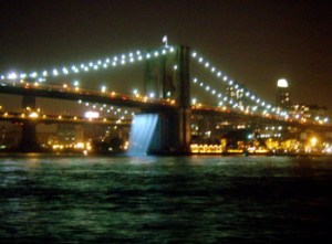 I saw one of the waterfalls erected by Olafur Eliasson and the Public Art Fund last night. For a nicely literary review check out Roberta Smith’s article in the New York Times. Sadly, my camera was inadequate to capture the beauty of the art.