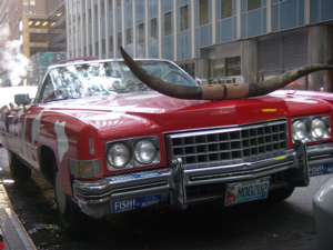 This cowboy drove his herd down from Maine. The car was parked on 43rd between Lexington and 3rd, so maybe he was rustlin’ up some shares at a stock broker’s ranch. Yippie-kai-yay, dude. Yippie-kai-yay.