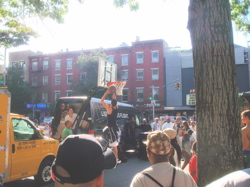 Some dudes set up a goal outside the courts as West 4th street a week ago, and some random white guy was dunking his heart out, missing most of the time, and incurring the scorn of the Black males watching. (I think the goal fit in the back of the Penske truck in the photo.)