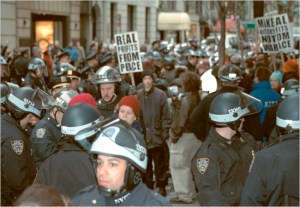 The New York Times is reporting that the city decided to settle a law suit from 2003 for two million dollars. The suit claimed wrongful arrest: the cops swept the street to crush any sign of political dissent, made mass arrests that imprisoned innocent passersby, and in the end, after deciding to settle out of court rather than face a trial, the cops refused to apologize. (Sounds a little like how they recruited inmates for Gitmo.)