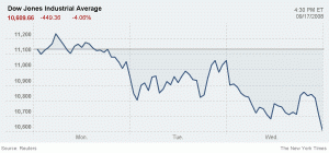 Unfortunately for the fantasy-based community, reality, courtesy of the Dow Jones Industrial Average, has given us a September surprise to shake up the presidential contest. Yesterday the Dow components lost almost 450 points or 4%, in one day. The loss since the close on 9/11 last week is over EIGHT HUNDRED POINTS (800 pts.). You read that right. EIGHT HUNDRED POINTS. That’s a lot — just over 7% of it’s value in three days. That means people who know a thing or two about which way the wind is blowing are scared out of their wits and are heading for the exits. What color is your parachute?