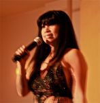 The recipe for successful dim sum burlesque requires the freshest ingredients, and Calamity Chang delivers. The line up Sunday night was Strawberry Fields, Dame Cuchifrita, Broadway Brassy, Nikkita Lemarcelle, Pandora Scintillator, and Calamity Chang herself, doing a classic fan dance. (To see the pix, check out the gallery at the bottom of this page.) Once the elements have been assembled, you put them together to highlight their piquant qualities, and the resulting ensemble is more than the sum of its parts. Strawberry Fields started her act as a man and took it off — her mustache and beard — to reveal strawberry shortcake as dessert before dinner. Broadway Brassy sang in both sets. Her first number was “On a Slow Boat to China” — a perfect choice to complement the Asian fusion of the evening. Felicia Fatale (oh happy fate!) picked up the pieces as stage kitten, and I had an awesome fried calamari salad with a sake-tini to wash it down. Calamity Chang assured me that there will be new acts rotating into the lineup every week, so the menu will be exciting and new every time.