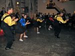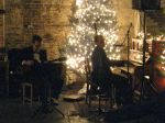 The lineup was Piano entertainment provided by Drew Nugent, the big band stylings of George Gee, burlesque beauty Plum Manchego, Roddy Caravella and his Crazy Lindy Hoppers, Jen Minsky of the Minsky sisters, and lastly Michael Arenella & His Hot Eight took the stage and swung the party until midnight, when I had to turn into a pumpkin. (That is, head to the Slip to catch Albert Cadabra’s Birthday Bash.) The guy in the Santa outfit kept calling me Quentin Tarantino, which is funny, cuz I totally look like Tobey Maguire. In revenge I started calling him Father Christmas (behind his back). I regretted that when he bought me a Manhattan. Then I thought, is there a cocktail called a Brooklyn? And if so, what’s in it? Gowanus canal water? Sheesh!