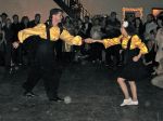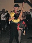 George Gee’s orchestra set the mood. Couples danced. Girls flirted with boys. In sum, Mr. Gee warmed the crowd up nicely. As noted above, Plum Manchego, Roddy Caravella and his Crazy Lindy Hoppers performed between the orchestras. Roddy’s Lindy Hoppers were so elastic they looked like Mr Fantastic performing a booty dance on Plastic Man. Hot stuff. I was sad to note that one of the Minsky Sisters was absent. Jen told me Kristen was sick, and travelled off to Providence to heal herself before their big show tonight at Tazza in the mighty state of Rhode Island — TONIGHT!!! If you have the means to get out of NYC, or if you live in Providence, check it out.