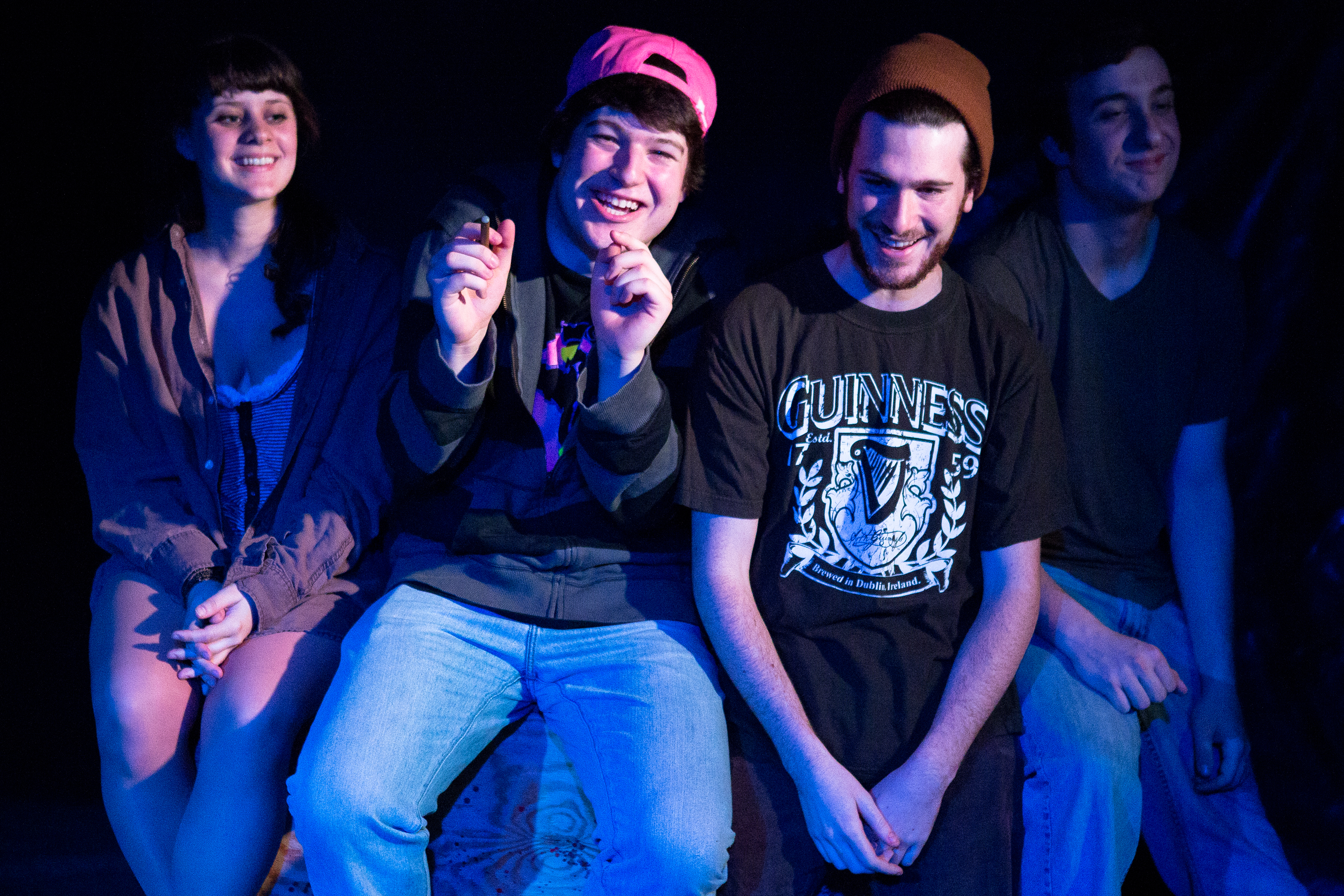 The lights go up on Ryan (RJ Vaillancourt) and Jenni (Amanda Brooklyn), two young lovers sitting on a rock somewhere in Colorado, blowing a J. He tells her he has to return to Connecticut, the land of his nativity: his brother Brandon (Cory Asinofsky) needs his support in taking care of their cancer-sick mother. Though they just met, she offers to tag along, and they spend an enjoyable week making the trek across country, trading witty conversation and carefree fantasies about how wonderful and free life can be. From the very beginning, James Presson (the playwright and a Connecticut native) uses this framing device to signal that we are in a world of white, upper-middle class, Jack Kerouac inspired teenage fantasy, a theme that ultimately becomes the moral of the play.